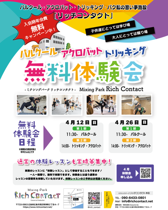 4月のパルクール・トリッキング体 験会の日程です!!